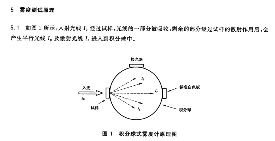 第5章测试原理中,规范了雾度计的结构及测量原理。