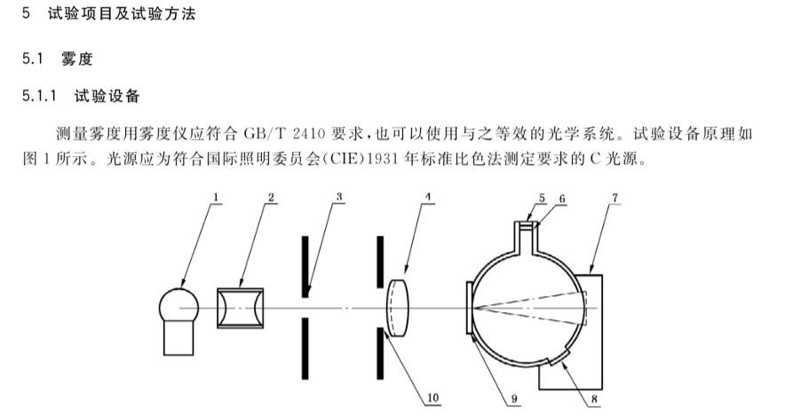 5.11试验设备中,规定了雾度计的要求。